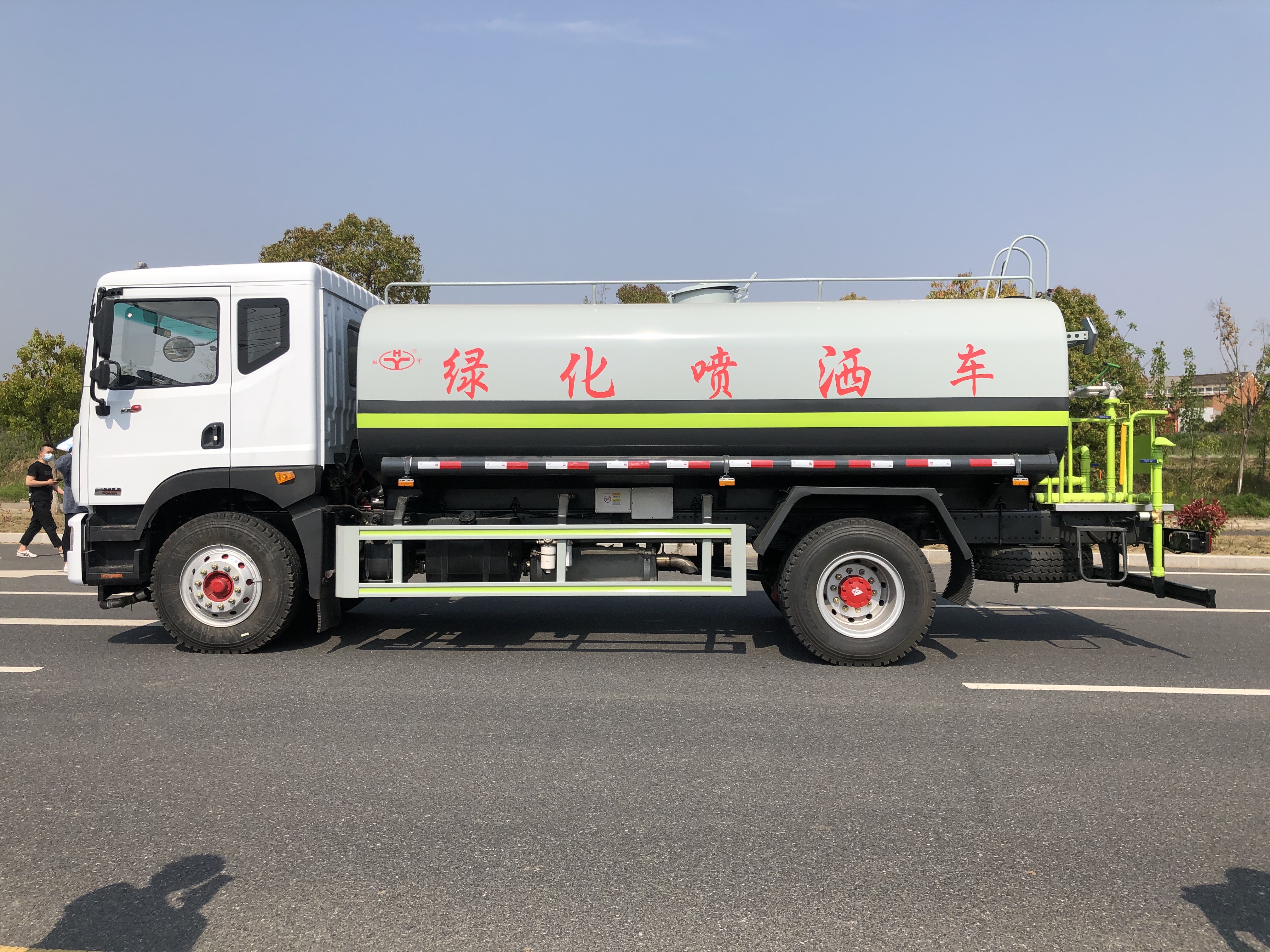 這款性價比超高的12噸灑水車采用東風多利卡D9駕駛室底盤,外寬2315mm,排半,玉柴165馬力(YCY30165-60)國六發動機,121KW,法士特8檔變速箱,9.00R20鋼絲胎,3.9/8噸德納前/后橋,250mm寬大梁,帶原廠空調、電動窗、ABS,行駛記錄儀。24V雙電瓶,斷氣剎,動轉,排氣制動。