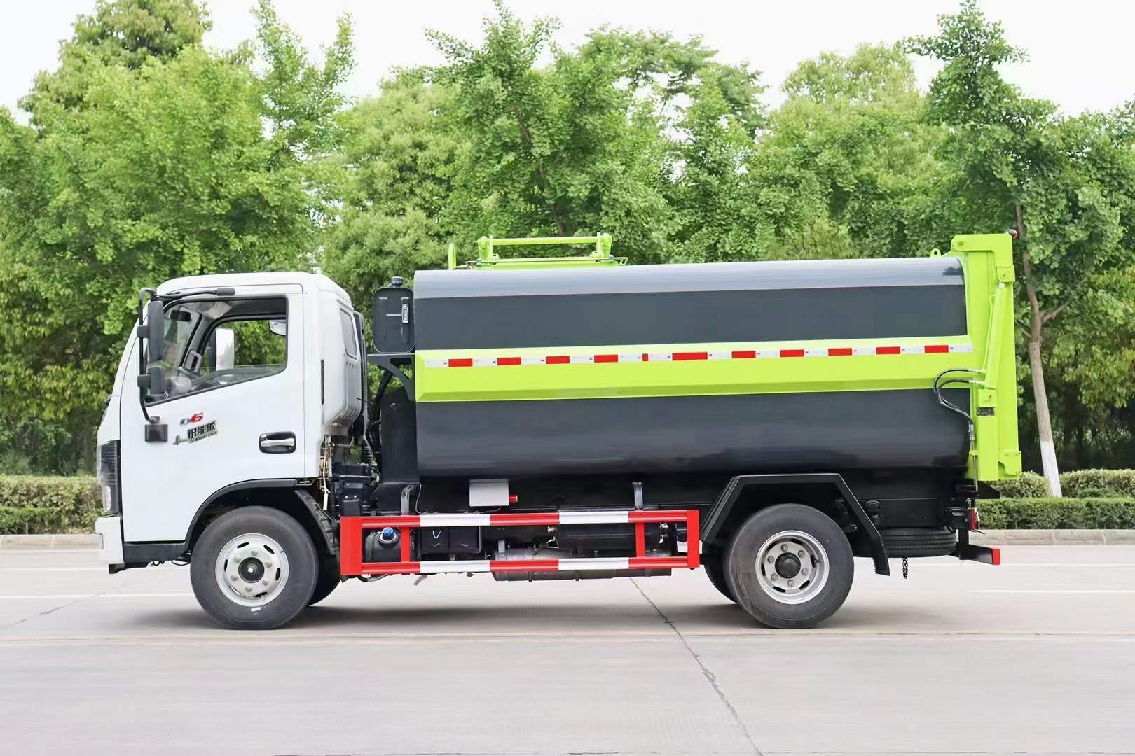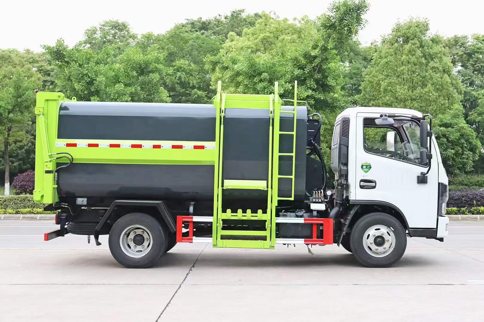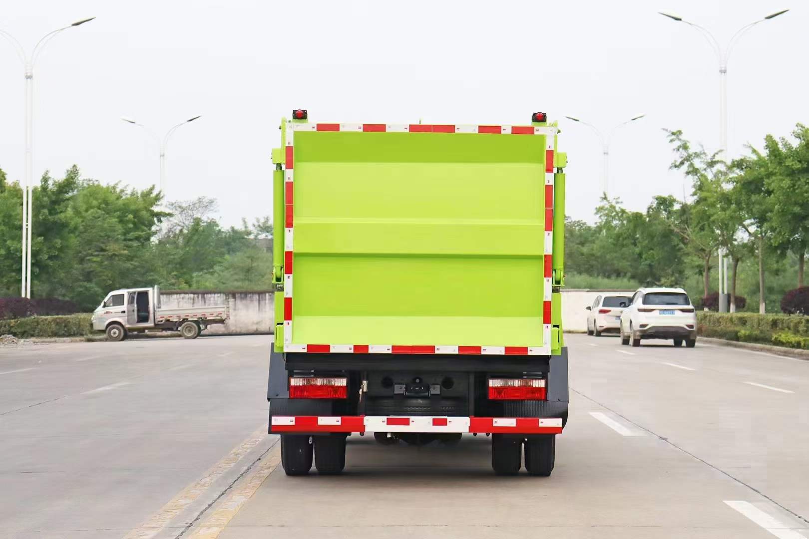 (2)壓縮比高、裝載量大:箱體容積約7立方米,裝載量相當(dāng)于同噸級排非壓縮垃圾的兩倍半。